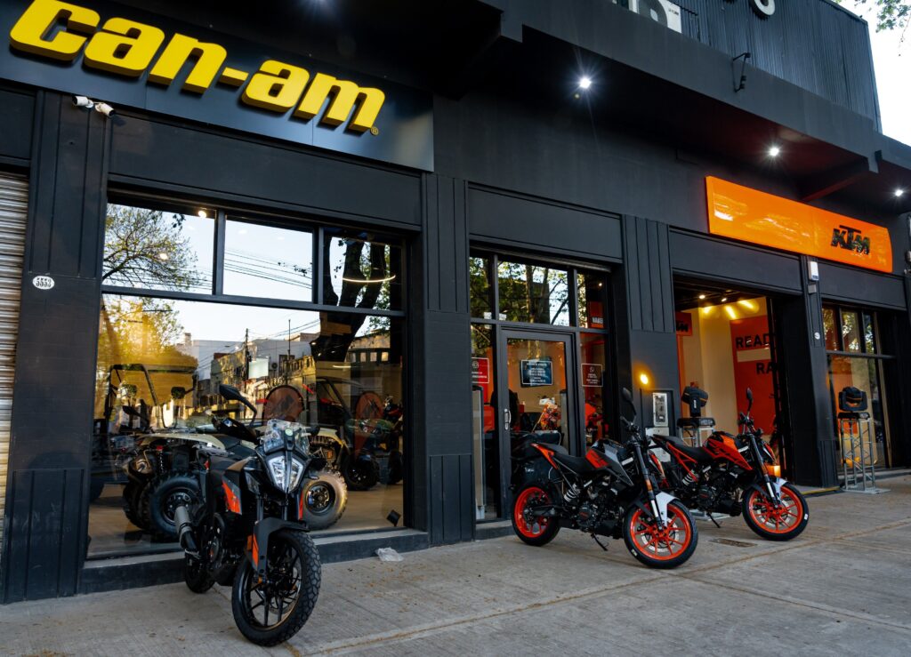 El nuevo espacio ofrecerá el line up completo de la familia KTM Duke, junto a los modelos offroad, travel y próximamente las novedades: las 390 Adventure R, Adventure X y Enduro R. En paralelo, los usuarios podrán encontrar la gama de vehículos Can-Am, entre ellos los Outlander 500, Defender HD7/HD9 y el Maverick X3 Turbo RR, que se destacan por su potencia, versatilidad y espíritu de aventura.